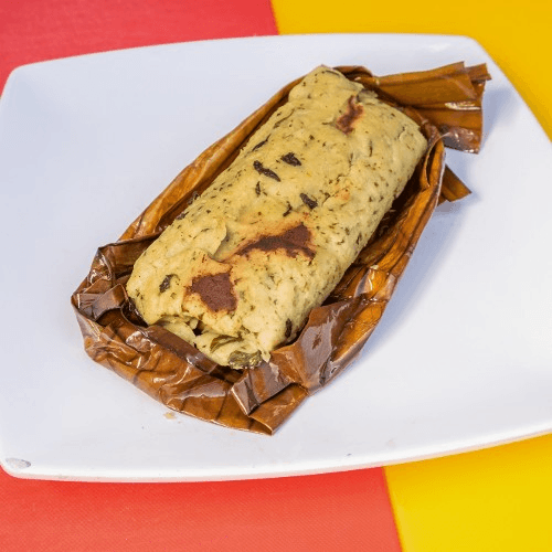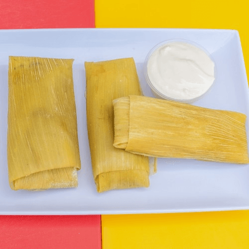 Corn tamale with sour cream on the side.