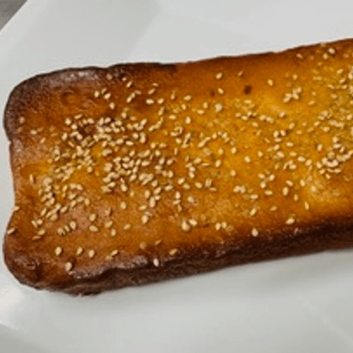 Fried plantains with cream filling and caramel.